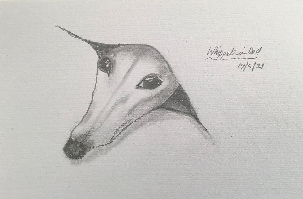 Ha, great! I think a slightly softer line 'outlining' the face would work better against all that white paper. But I love the eyes. It's either under the blanket waiting for its owner to come home......or it's been caught there and she's looking very sheepish! 😇